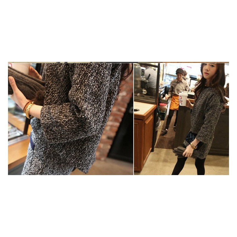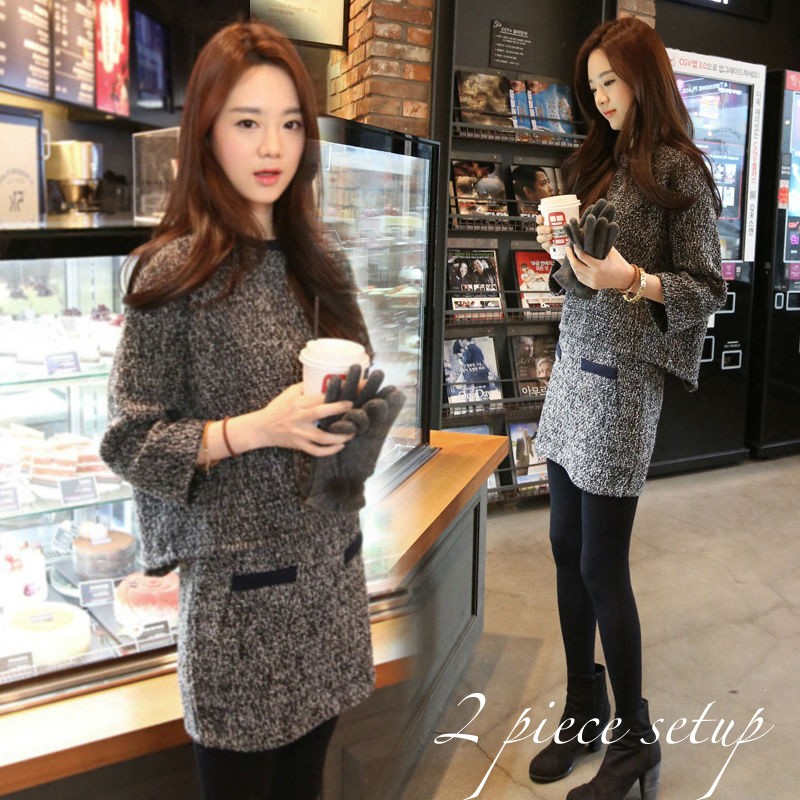 ジャガード風グレーミックスのプルオーバーとAラインスカートのスーツです♪