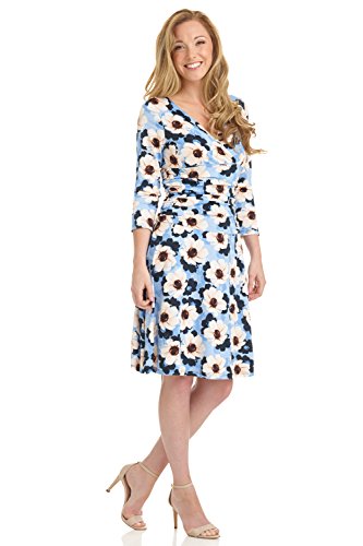 FLATTERING: Surplice crossover neckline elongates your look while still being modest. Wide ruched waist and flared skirt enhance and give an hourglass figure. Knee length skirt is classic and chic.