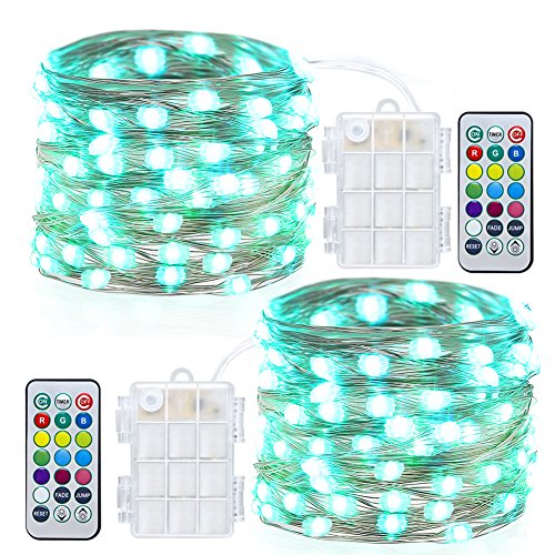 GDEALER 2 Pack Fairy Lights Battery Powered String Lights Multi Color Changing LED String Lights Waterproof 50 Led 16ft RGB Lights with Remote Control for Bedroom Patio Garden Stroller Christmas Tree