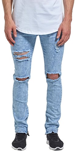 -. Title : MrPick Men's Side Ankle Zipper Skinny Ripped Stretch Destroyed Jeans
