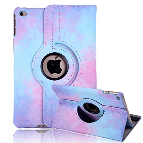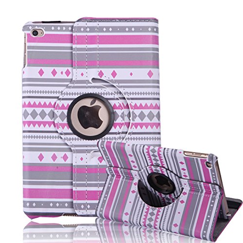 HDE iPad Mini 4 Tablet Case Rotating Flip Stand Folding Folio Magnetic Cover Designer for New 2015 Apple Mini 4 Retina (Fleur de lis)
