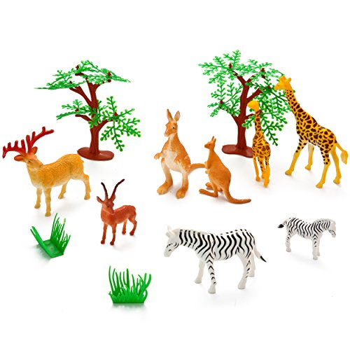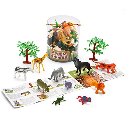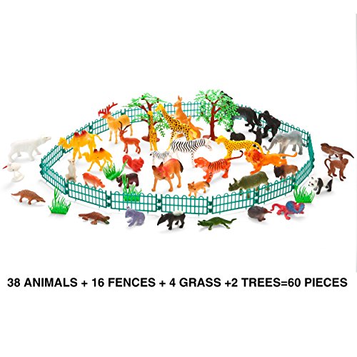 Studio : Joyin Toy Publisher : Joyin Toy Binding : Toy Product Description SUPER VALUE 4 in 1 with 60 Pieces Mini Plastic Jungle Animal Figures, Including 38 Animals, 16 Fences, 4 Grass and 2 Trees. Also Includes A Bonus Brochure. Perfect for Kids Toddlers Holiday Birthday Party Supplies. Great Leaning Toy to Tell the Realistic Animals, Practice Imagination and Hand-Eye Coordination of Sorting Animals: Like Mommy Playing with Baby, Lion Fighting with Tiger, and so on. The Bonus Brochure Introduces Animal Behavior For Each Jungle Animal, Helps Your Kid Understand More Quickly While Playing. It also Enhances Family Relationship When Parents are Reading the Description for Kids. Safe Play. Made of Toxin Free Plastic Materials, Safety Always Comes First. MONEY BACK GUARANTEE- "Contact Seller" and we will refund you or ship you a replacement if the one you received fail to work in 90 days. 0