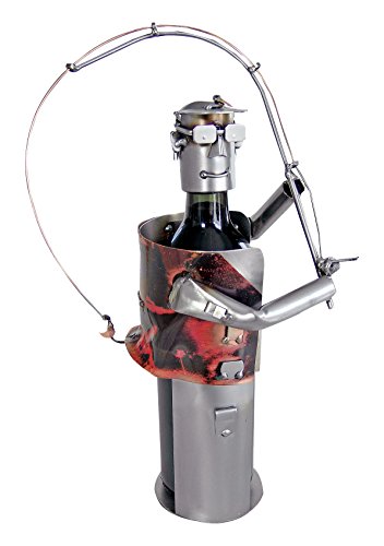 H & K Sculptures Fisherman Hooked Water Bottle Holder/Wine Caddy, , null