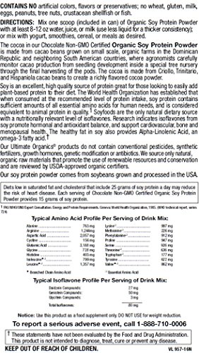 -. Feature : Our Vegan Soy Protein Powder is 100% USDA Certified Organic and provides a pure, wholesome, organic source of complete Vegan and Vegetarian protein. Our unique formula is made with 100% Organic Cocoa from small scale farmers in the Dominican Republic, and Non-GMO soybeans from the USA. / Natural Nutra's Organic Soy Protein Powder contains 16 grams of protein per serving. In addition to protein, Soy is packed with natural plant compounds that contain protective properties, antioxidants that contain immunity boosting properties, organic minerals and isoflavones. / Natural Nutraceuticals contributes 5% of all proceeds to the Vitamin Angels Foundation and provides ongoing support for the Canopy Project. We are committed to social responsibility and environmental sustainability. / Proudly made in the USA in a GMP Certified, NPA Awarded Diamond Manufacturing Facility. / Free shipping on orders of $49 or more and a no questions asked, 30-day money back guarantee. Click the 'add to cart' button to experience the best 100% Organic Soy Protein Powder available.