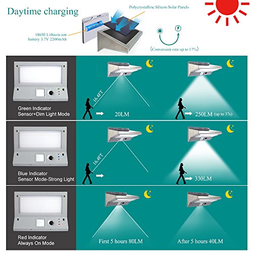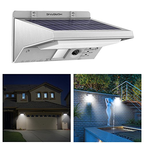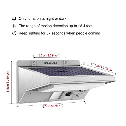 LONGER LIFETIME - With high quality ABS, Stainless Steel, and LED, no strobe, and weatherproof IP44 makes MOREFINE solar wall lamp work well for most kinds of weathers, such as heavy rain or snow storm