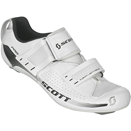 Binding : Apparel Product Description Built for elite triathletes who want to dominate the bike split, the SCOTT Tri Pro shoe will get you through the bike leg with maximum speed and deliver a rapid transition. With its tongue-less construction adaptive fit pattern the shoe is easy to get into and comfortable to wear. The shoe features a wide up-pull canopy strap and lower strap that can articulate to adapt to the shape of the foot. The ErgoLogic insole features an adjustable arch support and metatarsal button. The injection nylon glass fiber sole has an increased range of cleat adjustment with a stiffness index of 7. 0
