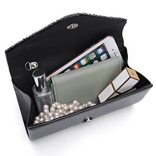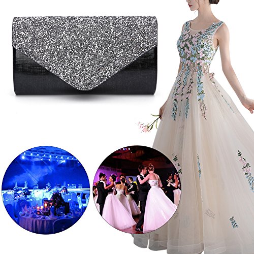 -. Feature : OCCASIONS: The evening bags for women formal designed for use during special occasions and with more formal clothing. Evening bags are perfect for parties, weddings, date nights, or nights out on the town. Suitable for party, family reunion, prom, banquet and cocktail party and so on. / DESIGN: This evening clutch comes in many different styles, like Clutch, Cross-Body bags, Purse, and this evening bags with chain strap will make you look even taller. Purse features a cinched satin design with rhinestone adorned trimming for high-class feeling! Highest quality materials, combined with fashion design and beautiful colors. / CAPACITY: This crystal evening bag have two rooms to keep things well organized, 1 pocket-style organizers, 1 big pocket inside, 4 small card pocket. Evening bag has enough space for whatever essentials they might need. At the very least, a phone, keys, ID and credit card, small containers of makeup and toiletries. / CARRY OPTION: Two ways to carry! Evening bag and purse. A handbag with a strap is great for situations where holding a bag for a long period may be uncomfortable, but a bag with a strap may seem awkward and inconvenience for some events. In these cases, consider a bag has two carry methods,also you can choose how you want to wear it for your carry method. / Dimensions: 7.8" x1.96" x4.6"inch(L*W*H).