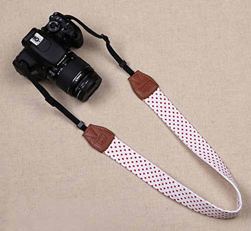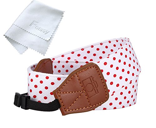 Fotasy AR4 Polka Dot Fabric, Stylish Neck Strap for Canon, Fujifilm, Nikon, Olympus, Panasonic, Sony, White
