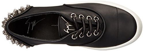 Lace-up fashion sneaker with stitched cap toe and bold studded heel counter