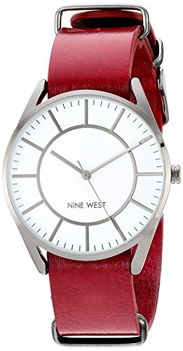 -. Binding : Watch -. Brand : Nine West -. Color : Red/Silver -. Department : womens -. EAN : 0086702590650 -. Feature : Domed mineral crystal; matte white dial with gunmetal hands and markers; black P.R.Inted outside minute track / Burgundy slip through strap with buckle closure / Japanese-quartz Movement / Case Diameter: 36mm / Not water resistant -. Label : Nine West -. Manufacturer : Nine West -. Model : NW/1943WTRD -. MPN : NW/1943WTRD -. PackageQuantity : 1 -. PartNumber : NW/1943WTRD -. ProductGroup : Watch -. ProductTypeName : WATCH -. Publisher : Nine West -. Studio : Nine West -. Title : Nine West Women's NW/1943WTRD Gunmetal Tone Slip Through Burgundy Strap Watch -. UPC : 086702590650