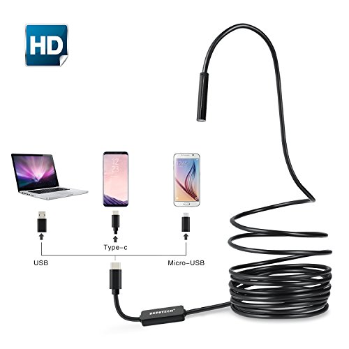 Depstech USB-C Endoscope, Semi-rigid Type-C Borescope Inspection Camera 2.0MP CMOS HD Waterproof Snake Camera with 6 Adjustable Leds for Android, Windows & Macbook OS Computer - 16.4ft(5M)