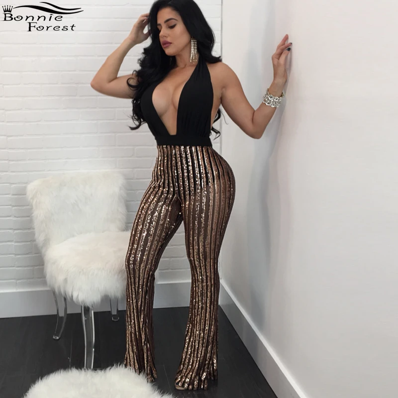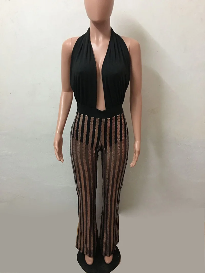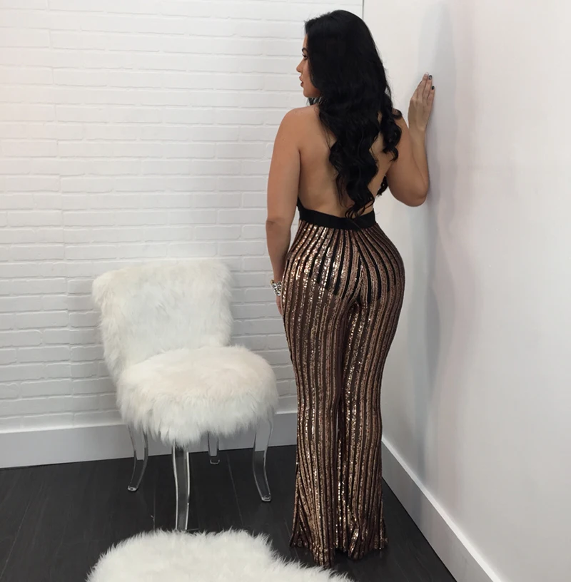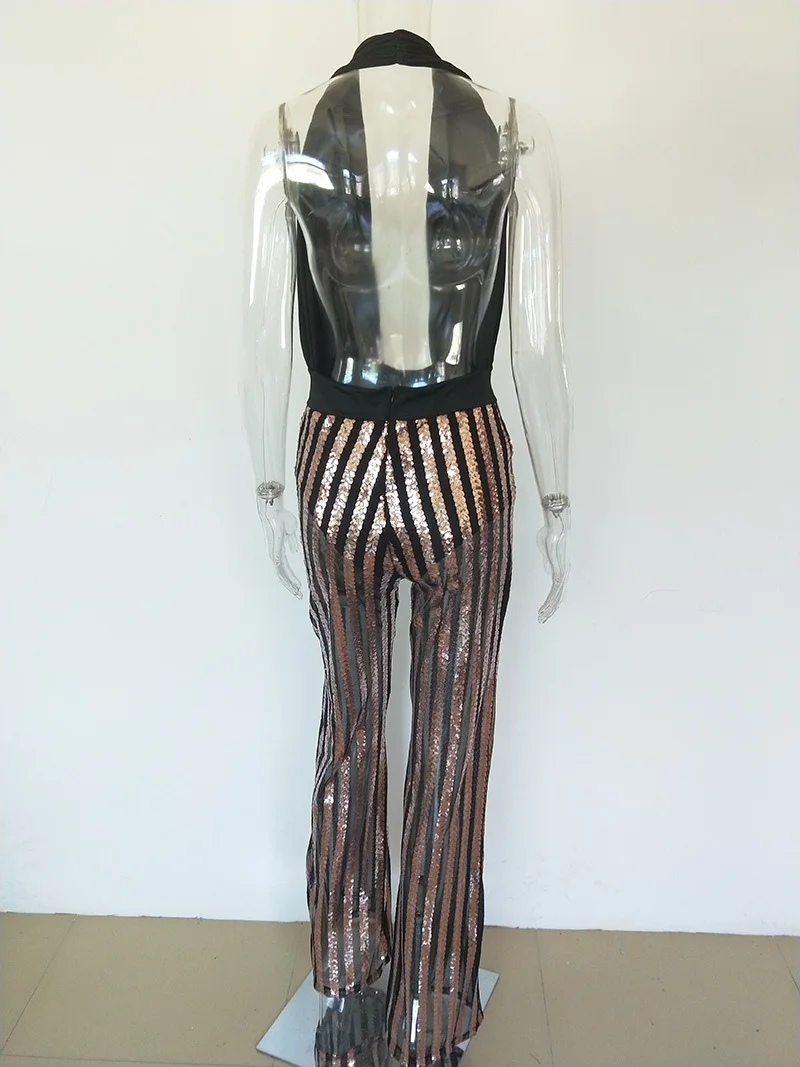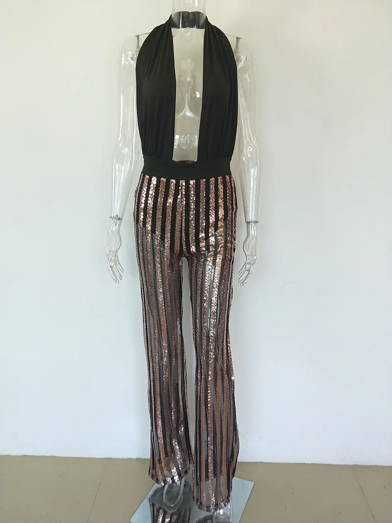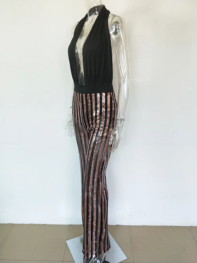 Character:Open back Halter neckline Sparkle Jumpsuit