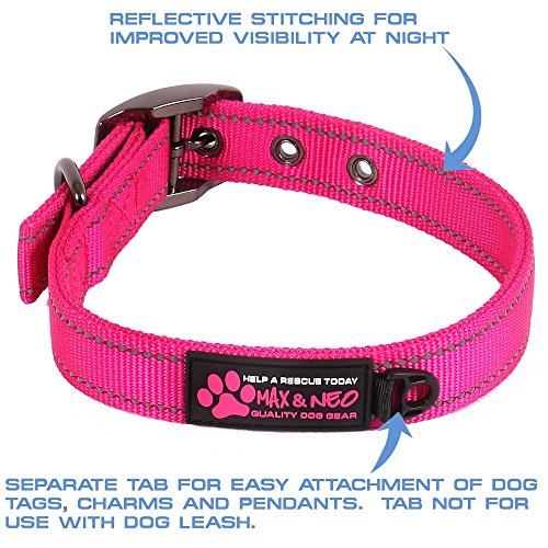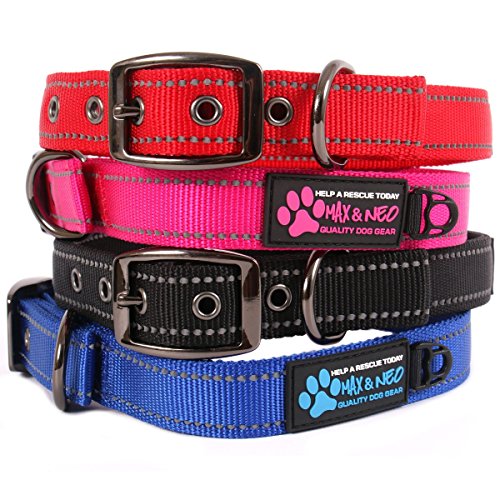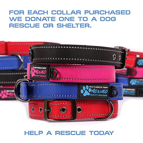 Studio : Max and Neo Dog Gear Publisher : Max and Neo Dog Gear Binding : Misc. Product Description ABOUT US Max and Neo™ Dog Gear is named after my dog Neo and my brother's dog Max. Both dogs lived happy lives in Arizona. When Neo passed away, I began fostering rescue dogs. It became apparent to me that running dog rescues required alot of resources in both time and money. Max and Neo Dog Gear was started to help dog rescues with their never ending need for dog supplies. We are proud to be able to offer this program which will provide a constant supply of dog collars and leashes to dog rescues. While a simple leash or collar may not seem like much, each donated leash and collar allows dog rescues to reserve its funds for other much needed services such as medical bills, spaying, neutering, and dog food. OUR COLLARS The MAX Metal Buckle Dog Collar is made from two layers of very high quality nylon. This special nylon is thick, tough yet comfortable. When you receive and feel the collar you will know that it was made with quality and care. Features: 1" wide x 4mm thick nylon for Med Large 3/4" wide x 3mm for Small 5/8" x 2mm for X-Small 1.5" x 4mm for X-Large Reflective stitching for increased nighttime visibility Separate loop for dog tags and charms Gunmetal finished quality metal