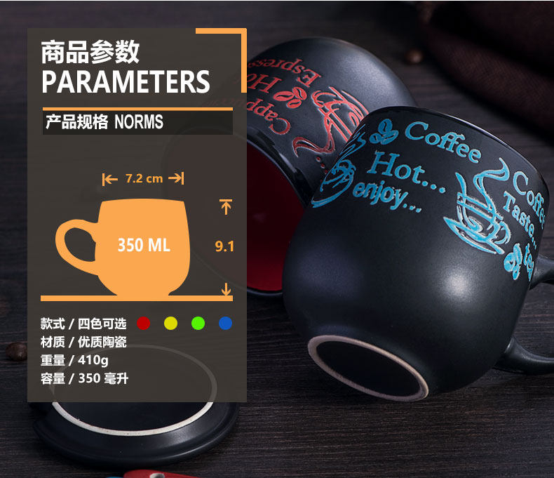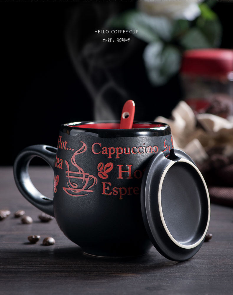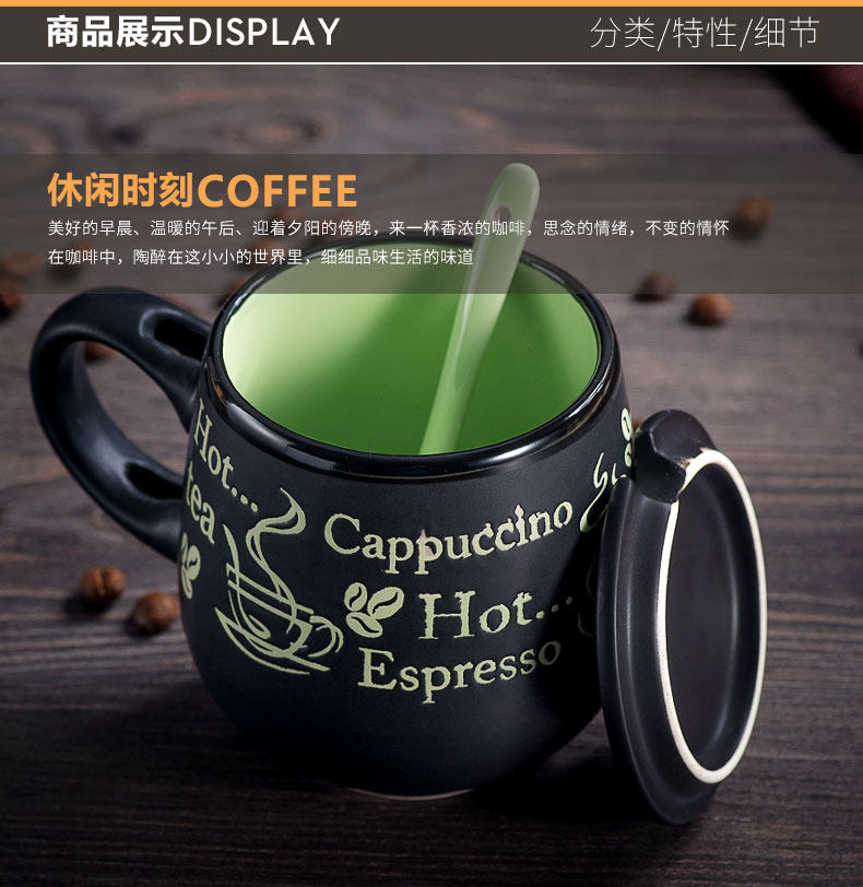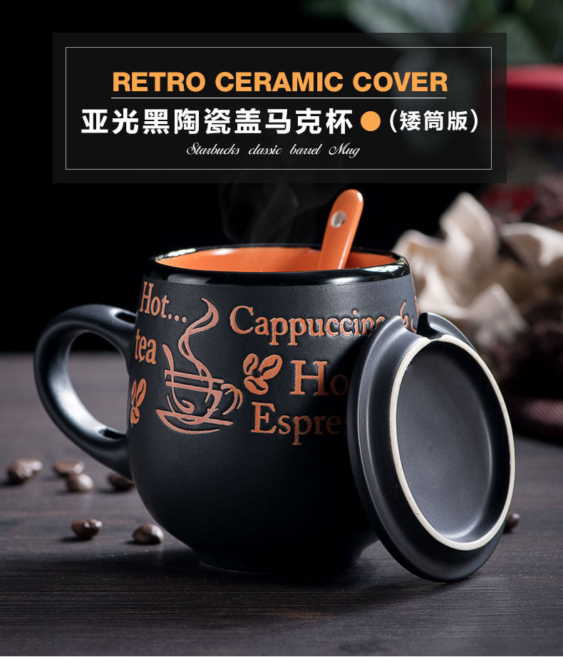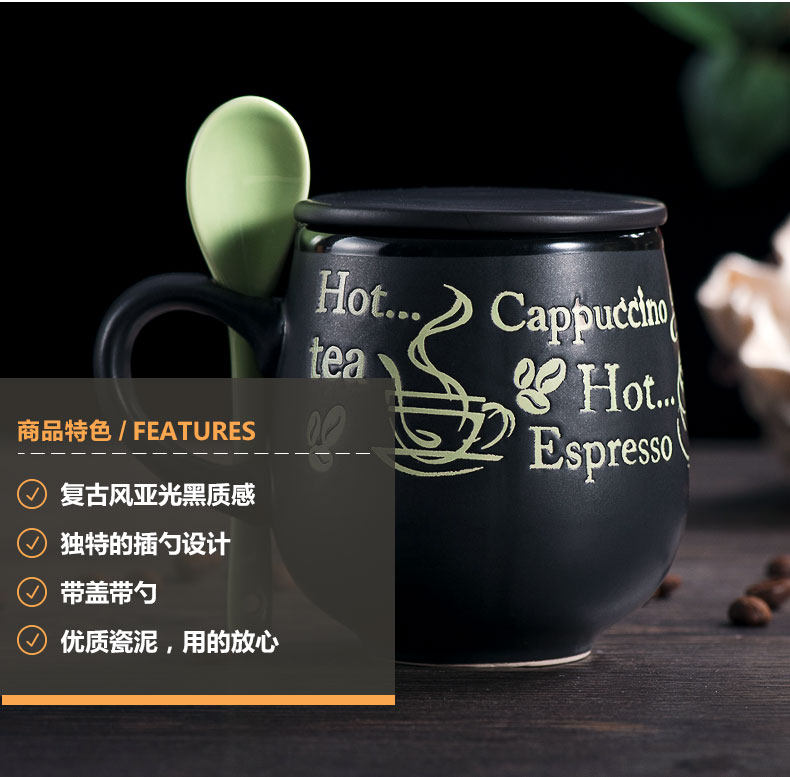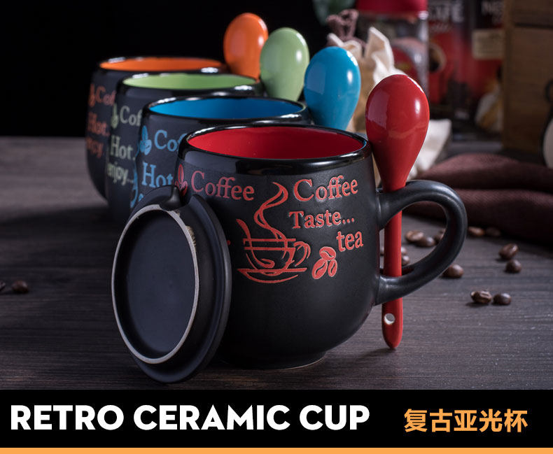 创意瓷盖亚光杯陶瓷马克杯带盖带勺牛奶杯大肚杯情侣杯子