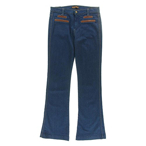 -. Title : 7 For All Mankind Leather Trimmed Jeans, Blue, 29