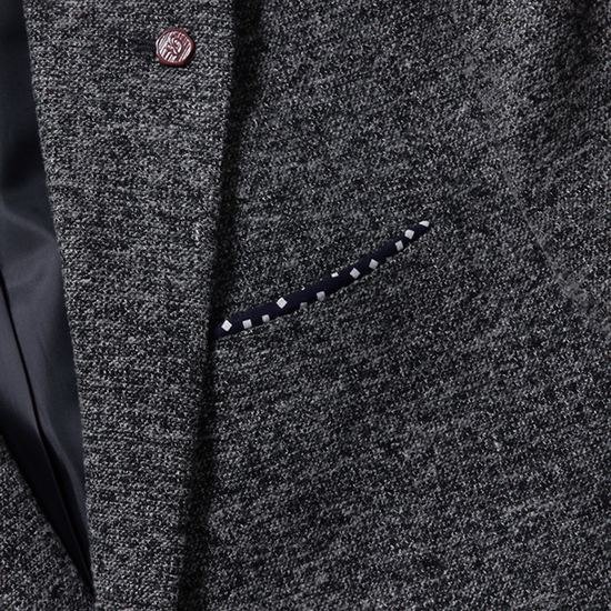 - 포켓 부분의 패턴 행커치프로 포인트 멋을 연출함.