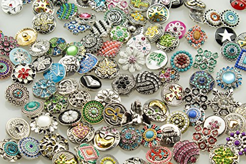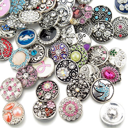 Soleebee HJ004 Mixed Random Alloy Rhinestones Resin 18 - 20mm Snap Buttons Jewelry Charms (Pack of 50)
