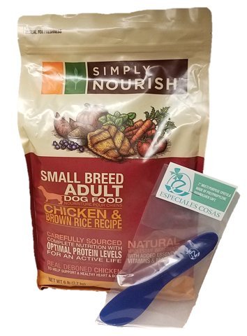 Simply Nourish Small Breed Adult Dog Food - Chicken and Brown Rice Recipe with Especiales Cosas Mixing Spatula. One 6 (six) pound bag of dry dog food.Feature