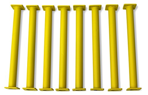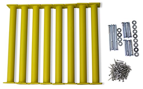 Building your own Monkey Bar add-on has never been easier with the Monkey Bar Hardware Kit from Eastern Jungle Gym. Our Monkey Bars kit includes everything that you need to add a monkey bar activity to your previously existing outdoor swing set, minus the lumber. Our kit comes complete with 8 yellow monkey bar rungs, mounting hardware and construction hardware. Already have a set of monkey bars? Use our kit to build an access ladder into the clubhouse. The monkey bar rungs are 15-1/8” long with a 1-1/4” diameter, made out of heavy-duty steel and finished in yellow powder coating. The plate size on the end of the rungs measures 2-1/4” x 2-1/4” and is pre-drilled with four holes for easy installation.