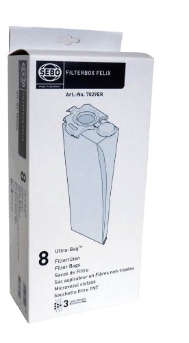 -. Binding : Misc. -. Brand : Sebo -. Color : White -. Department : Home & Kitchen:Vacuums & Floor Care:Vacuums -. EAN : 4012615702909 -. Feature : Used with the SEBO Felix series / Holds virtually all dirt captured by the vacuum / Improves the effectiveness and useful life of the microfilters / Can be changed in just a few seconds / Allows unimpeded airflow as they fill to capacity -. IsAutographed : 0 -. Label : SEBO -. Manufacturer : SEBO -. Model : 7029ER -. MPN : 7029ER -. PackageQuantity : 1 -. PartNumber : 7029ER -. ProductGroup : Home -. ProductTypeName : HOME -. Publisher : SEBO -. Studio : SEBO -. Title : SEBO 7029ER Filterbox for Felix Vacuum,8 Pack