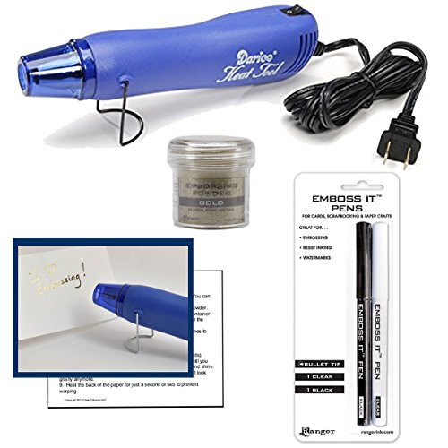 Embossing Starter Kit with Embossing Heat Tool, Ranger Embossing Pens (Clear and Black), Ranger Super Fine Gold Embossing Powder and Embossing Tips