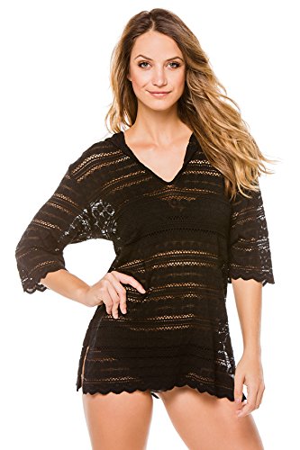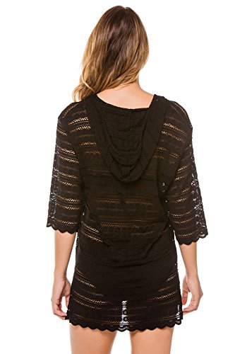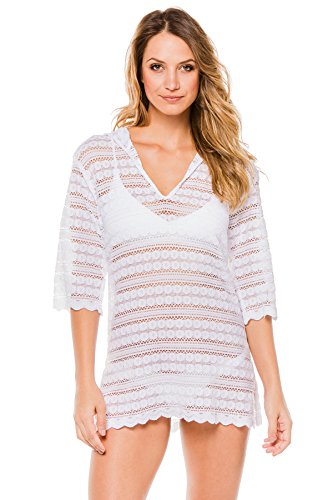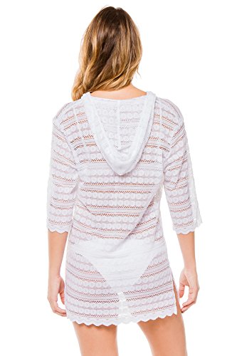 J. Valdi Women's Crochets Hoodie Tunic Swim Cover Up