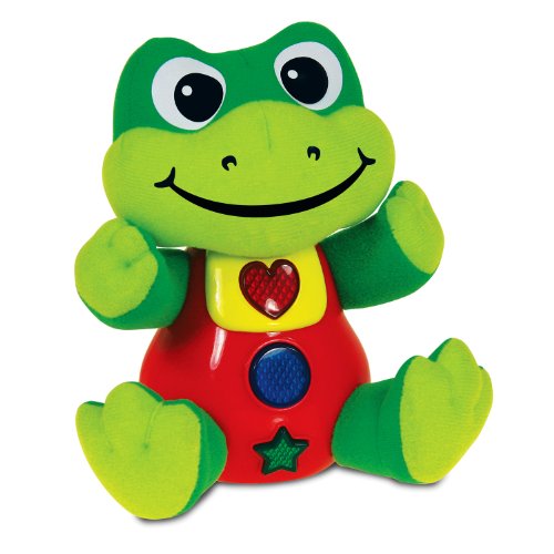 Babies and toddlers love the cute design, the light-up buttons and the fun sounds and songs that the Smart Pals Frog plays. Pushing the brightly colored shapes produces cheerful melodies, lights and engaging sounds. The interactive learning fun enhances coordination and tactile skills. Req. 2 "AA" batteries (sold separately). Frog has an on/off switch on the back. Polyester. Ages 3 months+. 6 1/2"L x 4 1/2"W x 6 1/4"H.