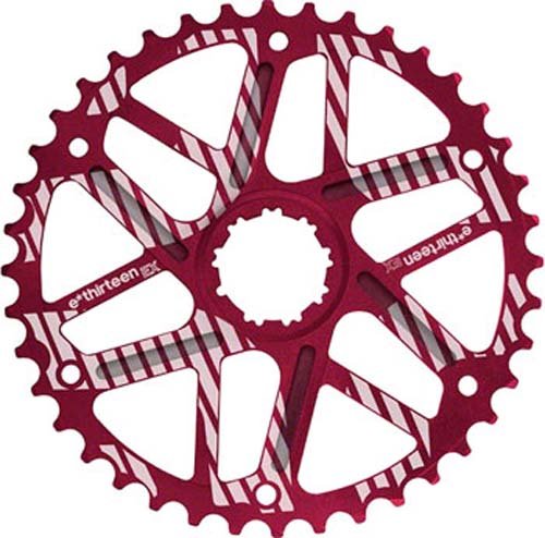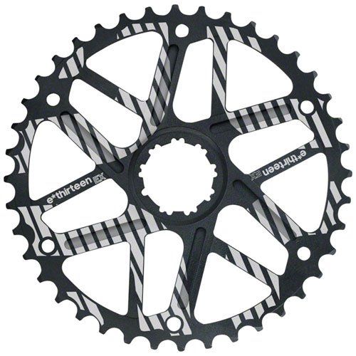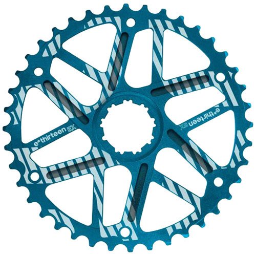 Studio : e*thirteen components Publisher : e*thirteen components Binding : Misc. Product Description No one disagrees with you: those massive, steep climbs are lame. Don't try to find the long way around, though, and by all means, do not get off and push. Slap the e*thirteen Extended Range Cog on your freehub body, and go for it. You buy yourself precious extra gear-inches with either the 40- or 42-tooth big ring back there, making even the worst uphill grinds a bit more bearable, if not possible, where they once weren't. The world of what you think you can ride will expand. Only compatible with 1x drivetrains. 0