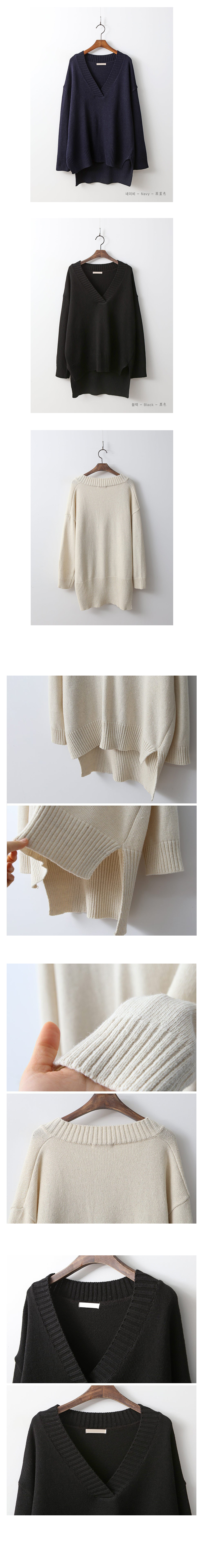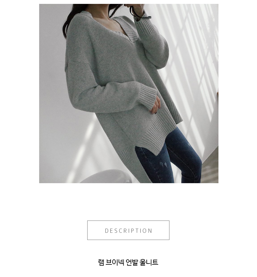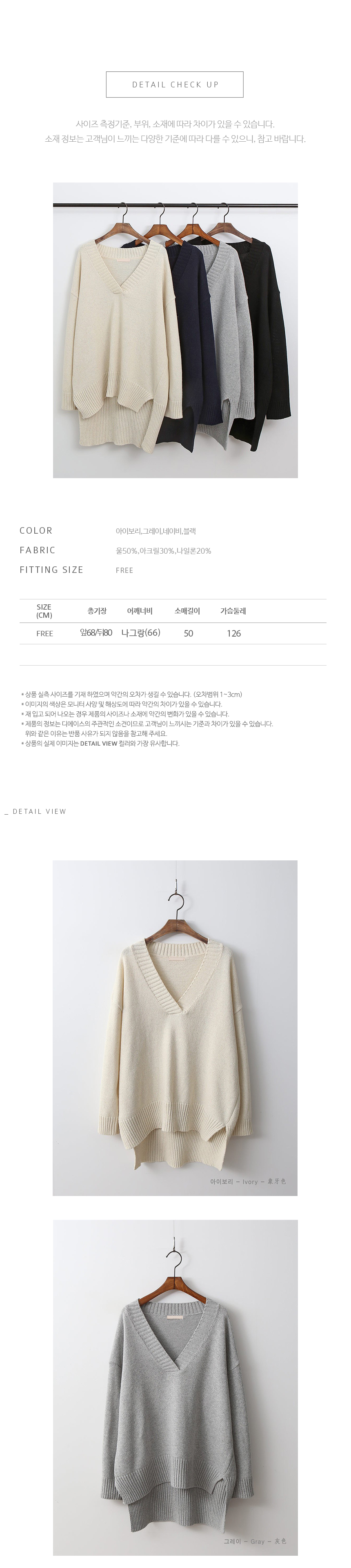 편안하게 떨어지는 내추럴 핏으로 목선이 우아하게 드러나는 알맞은 깊이의 브이넥이 여성스러운 니트랍니다 앞라인의 길이는 골반선을 덮는 산뜻한 길이로 뒷라인은 힙을 덮어 슬림한 하의와 코디해도 부담 없이 편하게 입기 좋은 아이템이랍니다 울 50%함량으로 부드럽고 두껍지 않지만 포근해 간절기 단독으로 입기 좋아요 색상은 아이보리, 그레이, 네이비, 블랙 사이즈는 FREE44~77