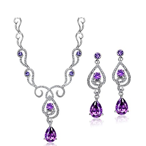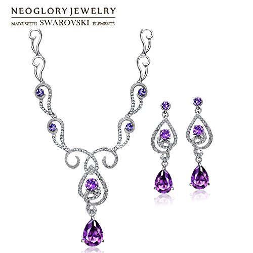 -. Title : Neoglory Art Nouveau Purple Cubic Zirconia Made with Swarovski Elements Teardrop Jewelry, Necklace, Earrings