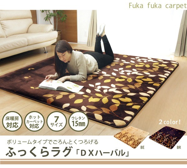 【商品名】リーフ柄 ラグ ボリュームタイプ 『DXハーバル』 ブラウン 90×185cm