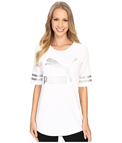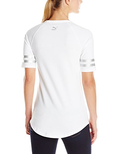 Tunic length baseball inspired tee with a shirt tail hem and slight drop tail. Elbow length ragaln sleeves with cover stitch on seam. Featuring metallic archive logo foil print at center front and metallic stripe double stripe foil print at end of sleeves. Self collar with reflective back neck tape. Metallic foil archive logo at back neck.Feature