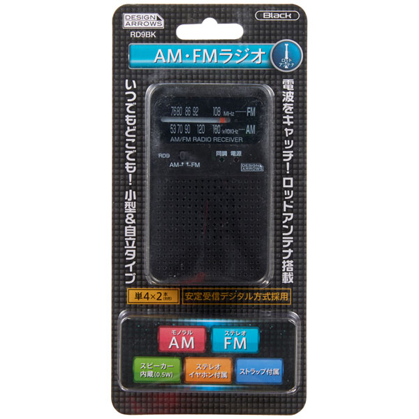 ●ヤザワ RD9BK AM/ FMアナログポケットラジオ(ブラック)