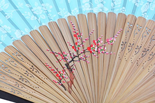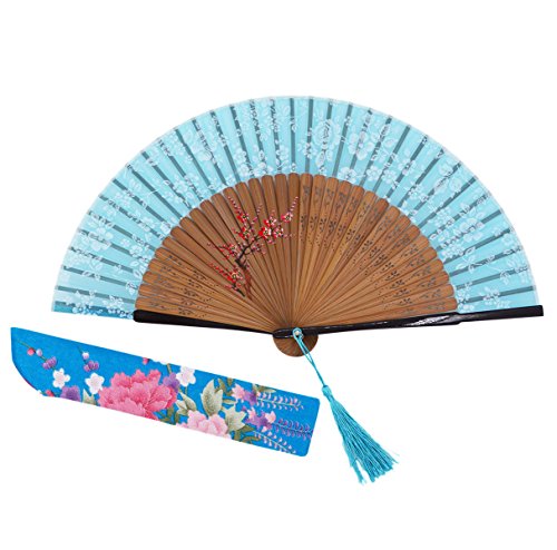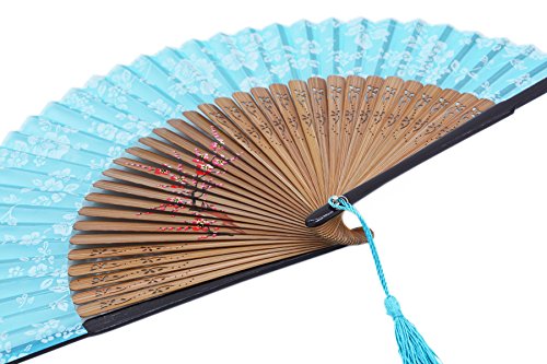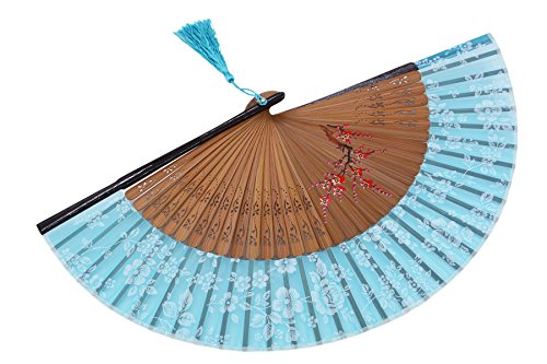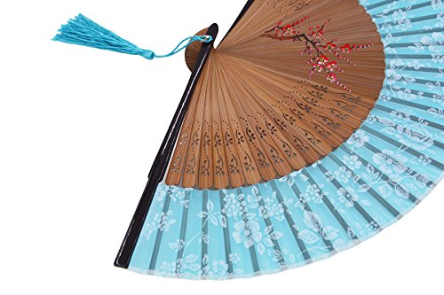 Amajiji Charming Elegant Modern Woman Handmade Bamboo Silk Folding Pocket Purse Hand Fan.Chinese /Japanese Vintage Retro Style JNSZ (20cm) (006)