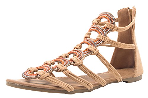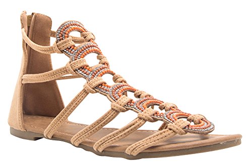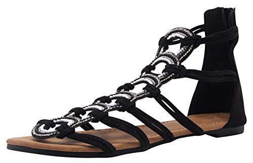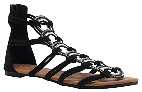 Product Description This flat sandal from Cambridge Select features knotted rope-style straps, multi-colored crystals and beading, back zipper, and a low, flat heel. Imported. 0