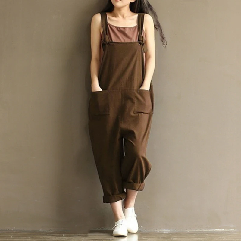 New Arrival 2018:: 2017 Oversized Women Strap Fashion Casual Loose Jumpsuit Pockets