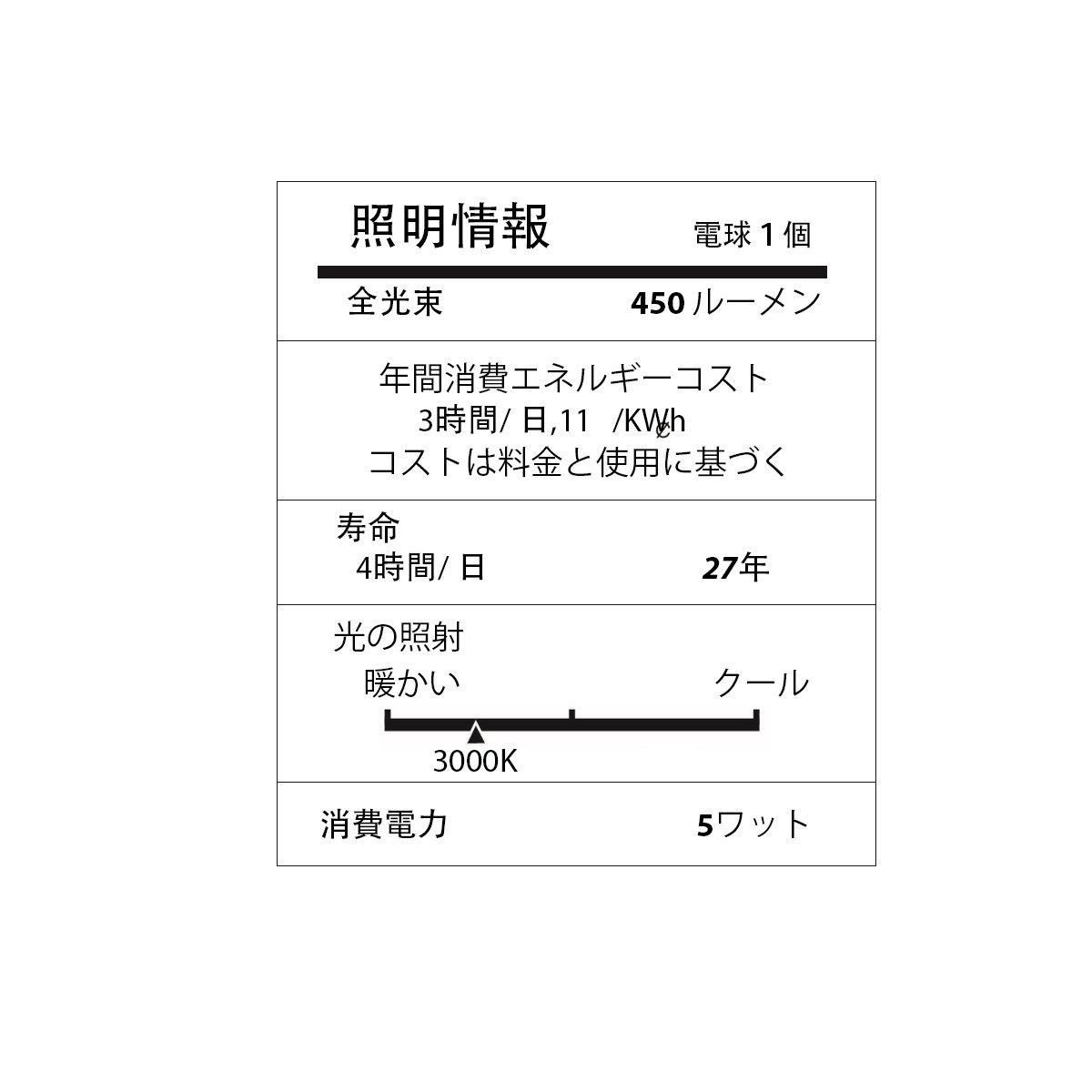 Total luminous flux (brightness): 450 lm