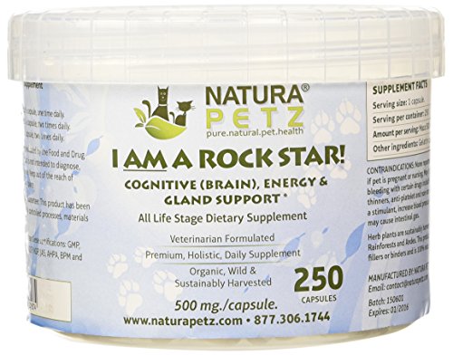 -. Title : I AM A ROCK STAR! Memory, Gland (Hypothalmic, Pituitary and Adrenal) and Energy Support for All Life Stage Dogs and Cats, 250 Capsules, 500mg per Capsule