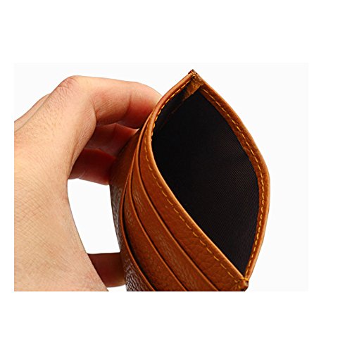 -. Feature : 100% genuine leather with fabric lining and solid hardware. / 4 credit card slots & 1 ID window / The card holder are make of advanced unique blocking material, which blocks RFID signals and protects the valuable P.R.Ivate information stored on RFID chips far away from the unauthorized scans. Provides peace of mind while traveling on vacation and surrounded by strangers in airports, crowded streets, and shopping. / Mini design for practicality. Card holder is light in weight, perfect fit for travel and business visit, tucked away almost invisibly in your pocket. / This card holder wallet is perfect for gift giving, everyone has so many cards to carry, own this wallet, you can easily put your cards neatly and well organized.