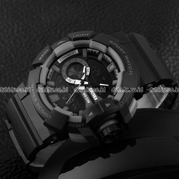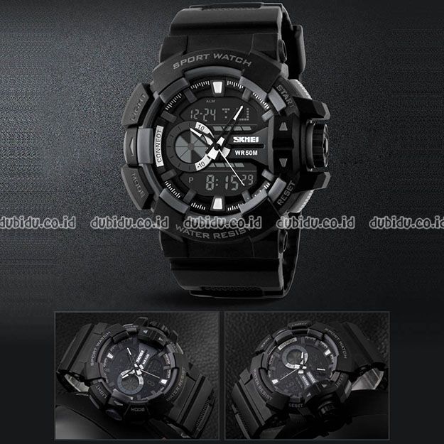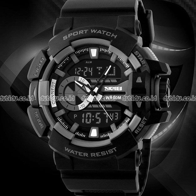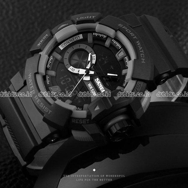 DESKRIPSI SKMEI Jam Tangan Pria Cowok Sport Analog LED Casio Baby G-Shock Fortuner 1117 AD1117 Original merupakan jam tangan / arloji yang diproduksi oleh SKMEI, jam tangan ini merupakan jam dengan desain dual dial movement digital dan analog dengan japan dial movement dan kualitas kaca jam yang bagus. Selain itu jam ini didesain dengan fitur LED Light, stopwatch, alarm, chrono, calendar, double movement, yang menyerupai jam tangan Baby G-Shock.