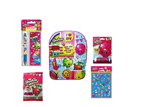 -. Brand : Shopkins -. Color : Pink -. Department : girls -. EAN : 0724999230414 -. Feature : One main zipper compartment Adjustable shoulder straps / Package of 4 Shopkins Sticker Sheets Each sheet has 26 assorted Shopkins / The D'Lish Donut Lip Balm Is Filled With Jelly Donut Flavor! / One gel pen and one matching bookmark / Shopkins Crunchy Pop Candy Mix -. MPN : 6790963 -. PartNumber : 6790963 -. ProductGroup : Apparel -. ProductTypeName : LAGE -. Size : large -. Title : Shopkins Book Bag Sticker and Gel Pen -. UPC : 724999230414
