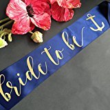 Nautical Bachelorette Sash Navy Blue Bride To Be with Anchor with Gold Metallic Ink