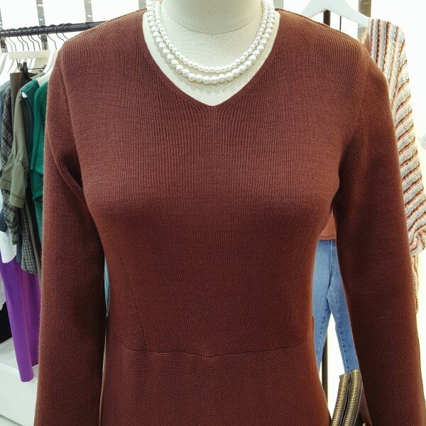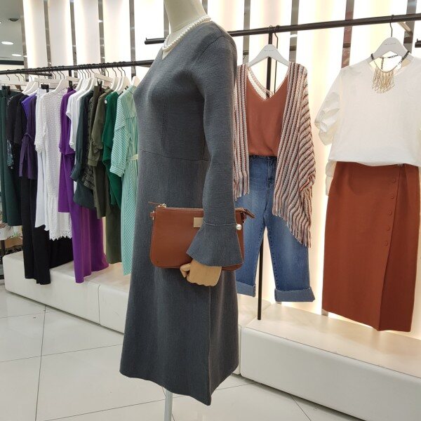 부드럽고 따뜻한 소재감의 니트원피스입니다.소매부분 진주포인트에 V네크라인으로 세련되고 여성스러운 디자인입니다.