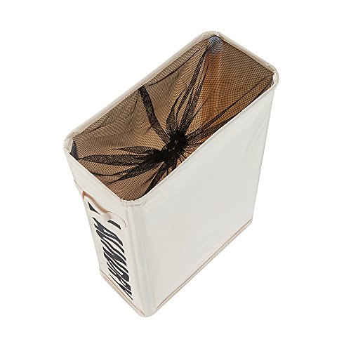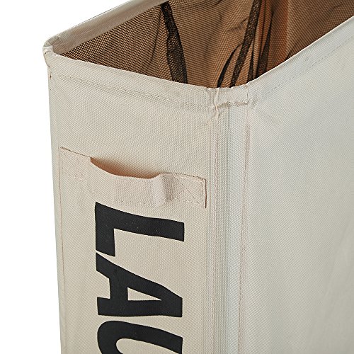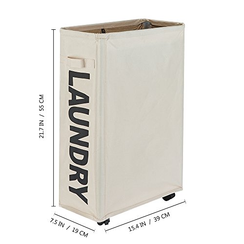 HaoMei Slim Collapsible Laundry Hamper with Wheels, Foldable Laundry Bin with Handles, Laundry Basket with Mesh, Beige