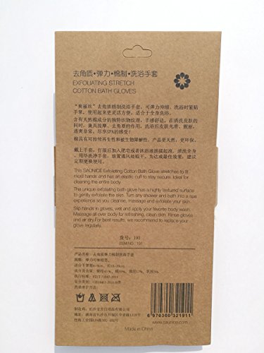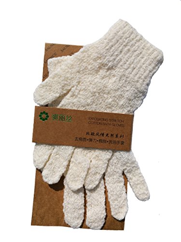 -. Feature : This Exfoliating Cotton Bath Glove stretches to fit most hands and has an elastic cuff to stay secure / HEALTHY SKIN by Total Cleanse of All Dead Skin Cells Reducing Rough Skin, Blemishes, Acne and Pimples / EXFOLIATE WITH SPA SCRUBBER GLOVES and Help Your Moisturizer Penetrate Better and Your Self-tanner Apply More Evenly and Get Massage Therapy Effect Improving Circulation, Dry the Lymphatic System and Release Toxins to Prevent Congestion and Cellulite / SHOWER GLOVES SET That Will Keep Your Skin Glowing - Make Your Skin Look Smooth, Even, Toned and Youn--Suitable for men and women,Ideal texture of natural cotton base layer with nylon exfoliating loops / The gloves have good flexibility, suitable for the vast majority of the palm of your hand.