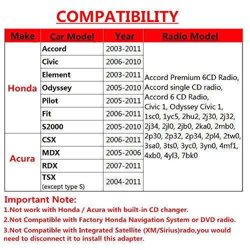 Moonet 3.5mm Mp3 Aux-in Adapter Audio Input Auxillary Fits Accord Civic CRV Element Odyssey Pilot Fit S2000