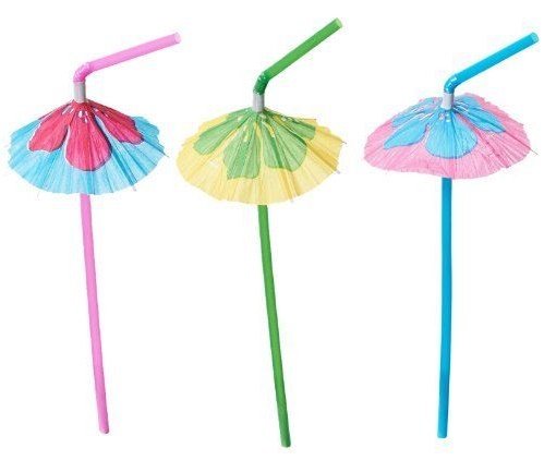 -. Title : Hibiscus Umbrella Parasol Straws - 48 Pc - Great Luau Tropical Drink Straws