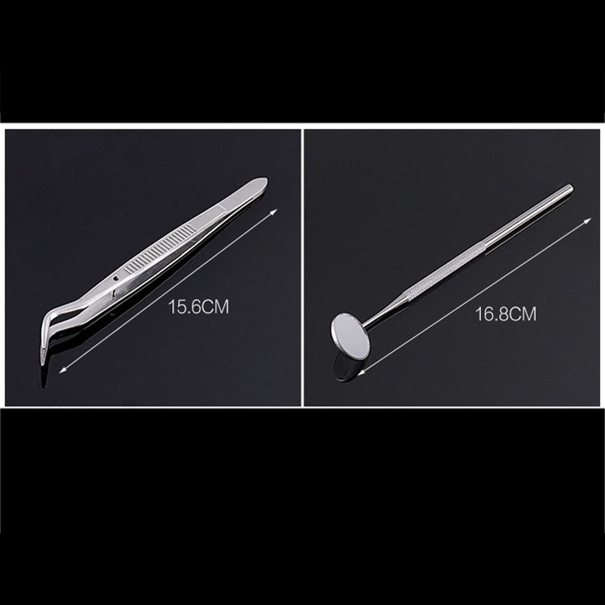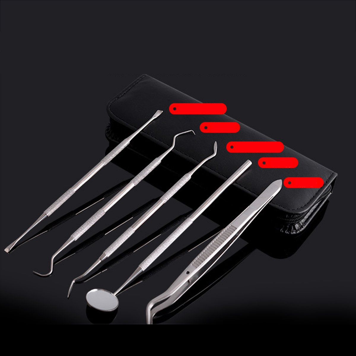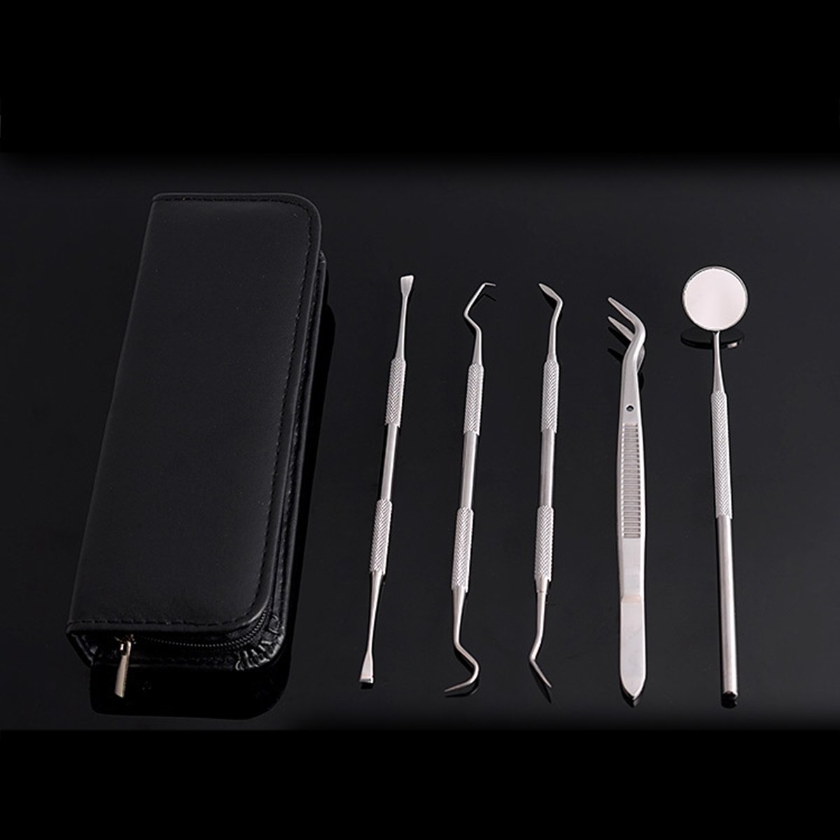 This 5-Pc kit includes dental dental calculus, dental pick, tweezers, scissors scaler, and anti-fogging dental mirror.
