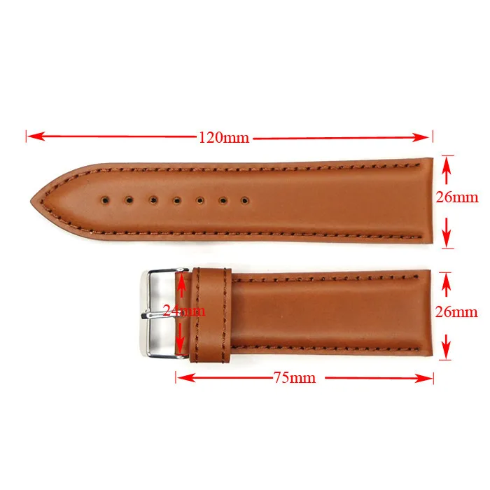 이탈리아 오일 진짜 가죽으로 된 시계 끈 26mm 밝은 갈색 빈티지 시계 밴드 손목 시계 스테인레스 스틸 버클 여성 시계