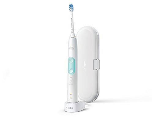 ReleaseDate : 2017-12-29 Studio : Philips Oral Healthcare Publisher : Philips Oral Healthcare Binding : Health and Beauty Product Description Improve your gum health up to 100% better than a manual toothbrush with the Protective Clean 5100 rechargeable electric toothbrush. It has a pressure sensor that protects teeth and gums from excess brushing pressure. Brush heads wear out over time. Our Brush Sync technology tracks how long you have been using your Optimal Gum Care brush head and how hard you have been brushing. Your electric toothbrush will beep to inform you when to replace your brush head. Customize your own brushing experience with your choice of 3 modes: Clean, White and Gum Care. The easy-start feature slowly increases the power of the brush as you get used to the Sonicare experience and the smartimer encourages a full 2 minutes brushing time as recommended by your dental professional. The battery charge indicator light lets you know when it is time recharge; 2 week battery life. The kit includes 1 Protective Clean 5100 handle, 1 Optimal Gum Care brush head, 1 charger, 1 travel case. 0